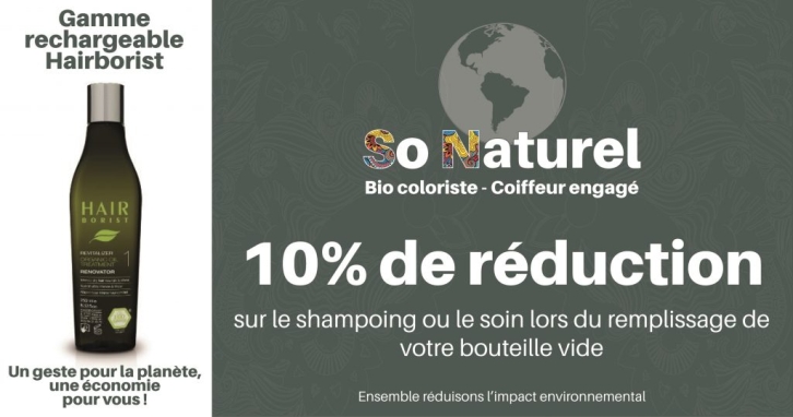 Luttez contre la pollution plastique dans les océans est l’acte éco-responsable choisi par So Naturel. De plus grâce à cette engagement, vous économisez 10% sur le remplissage de vos bouteilles de shampoings, de conditionneurs et les huiles végétales de notre gamme Hairborist !